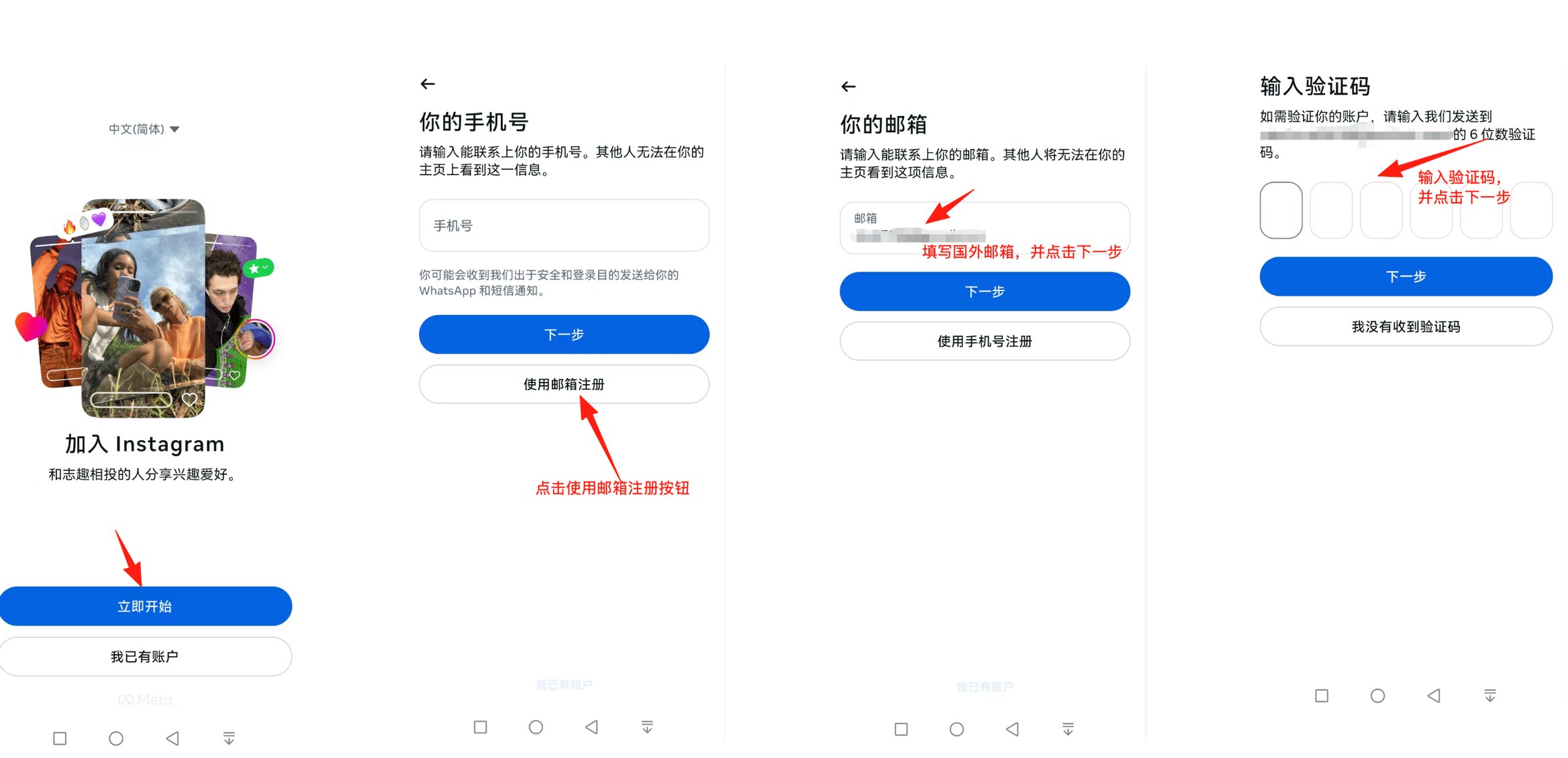 Instagram 的注册流程非常简单。
