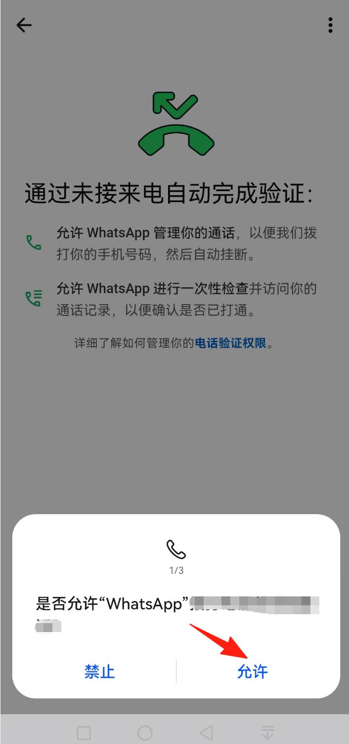 紧接着,Whatapps 就会给刚才的那个手机号拨打电话。您不用管,它会自动挂掉。